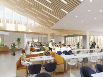 Ce projet porte sur la construction d’un mess sur le complexe militaire (actuellement le site ne dispose pas d’équipement de restauration). Dimensionné pour 1500 rationnaires, cet équipement de type restaurant d’entreprise doit offrir diverses prestations de type restauration / loisirs. Il permettra d’assurer la restauration courante 365 jours par an, les prestations de restauration dites « spéciales », officielles ou privées, ainsi que les prestations dites de « loisirs ».
